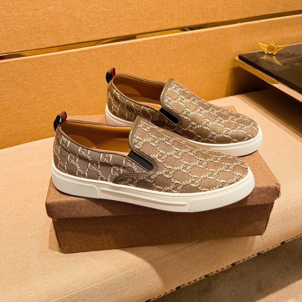 GG Men's Slip on White Brown Cowhide Canvas 530404