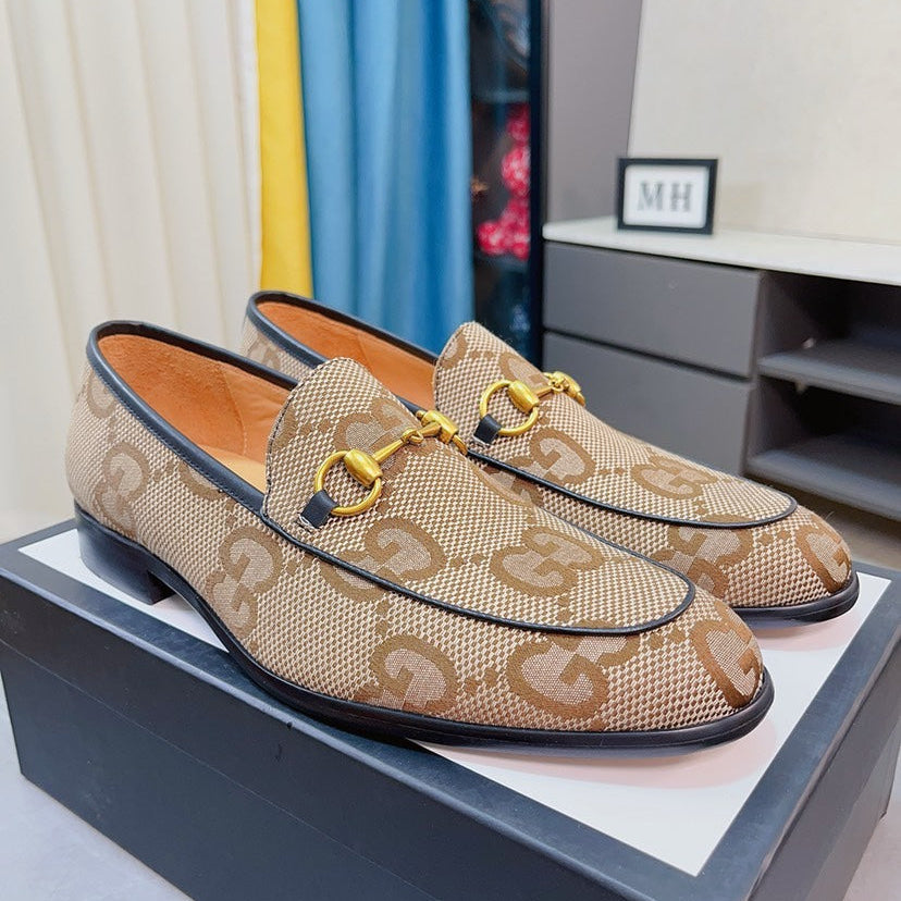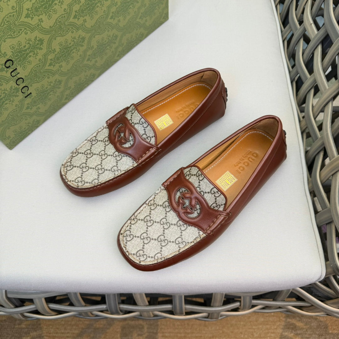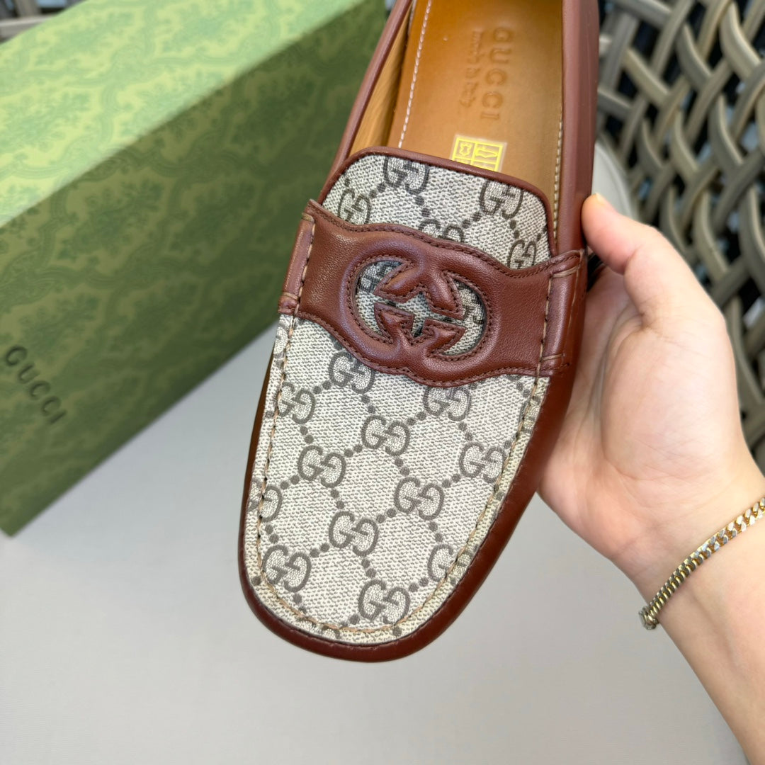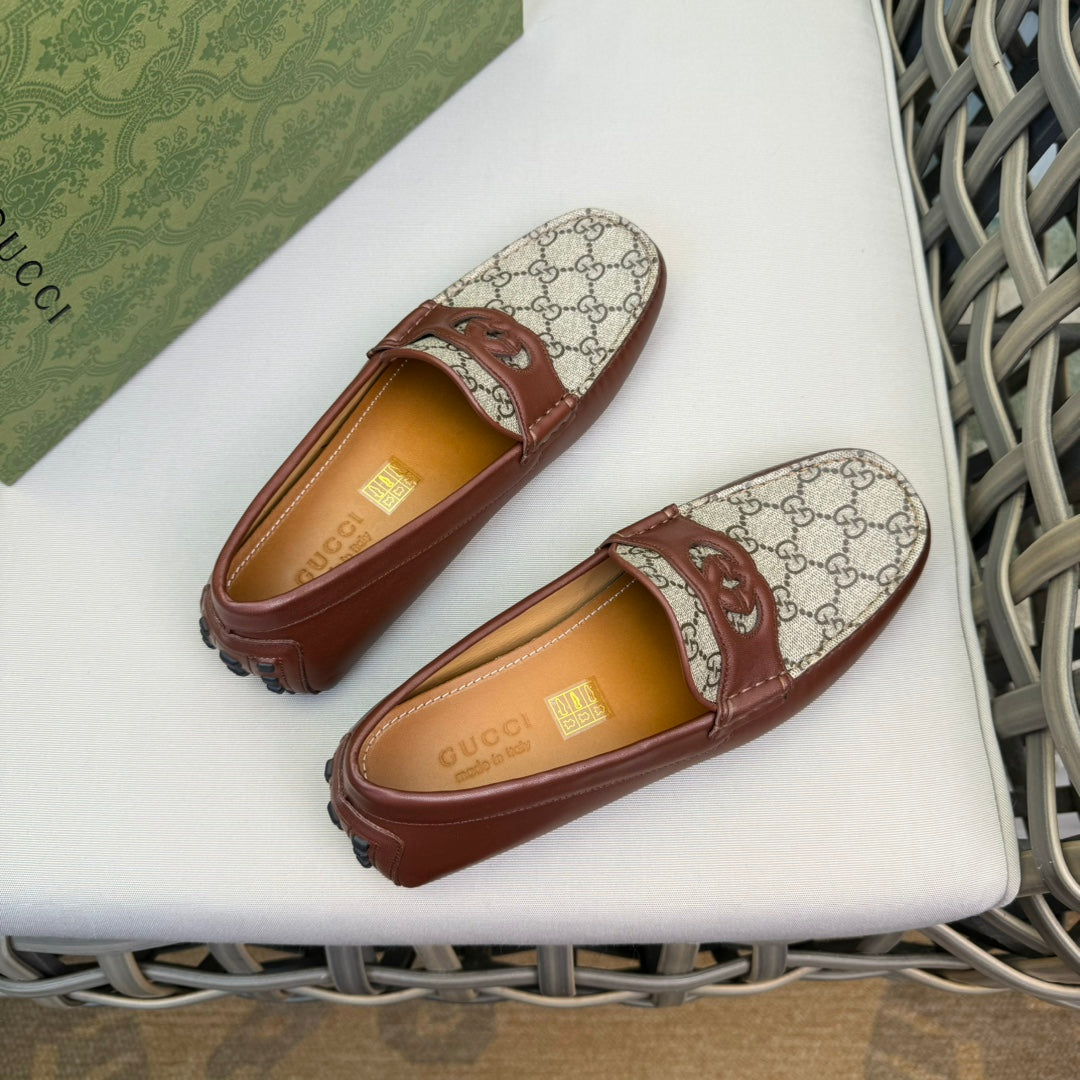 GG Men's Loafer Brown Canvas Cowhide 537555