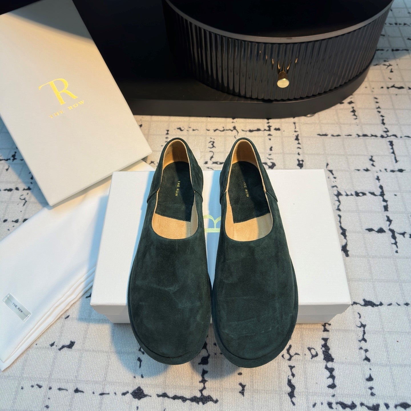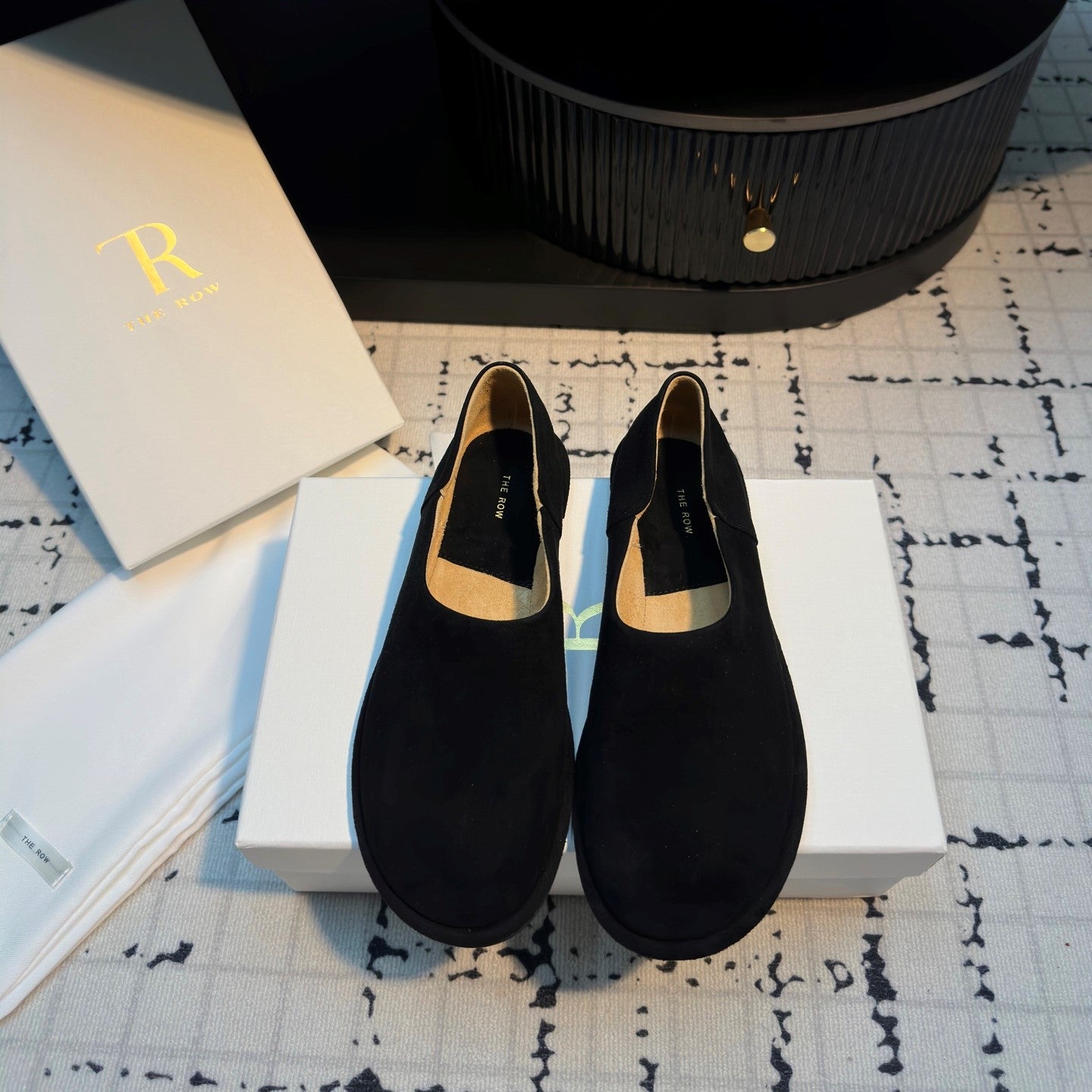 The Row Flat Loafer Black Cow Suede 334450