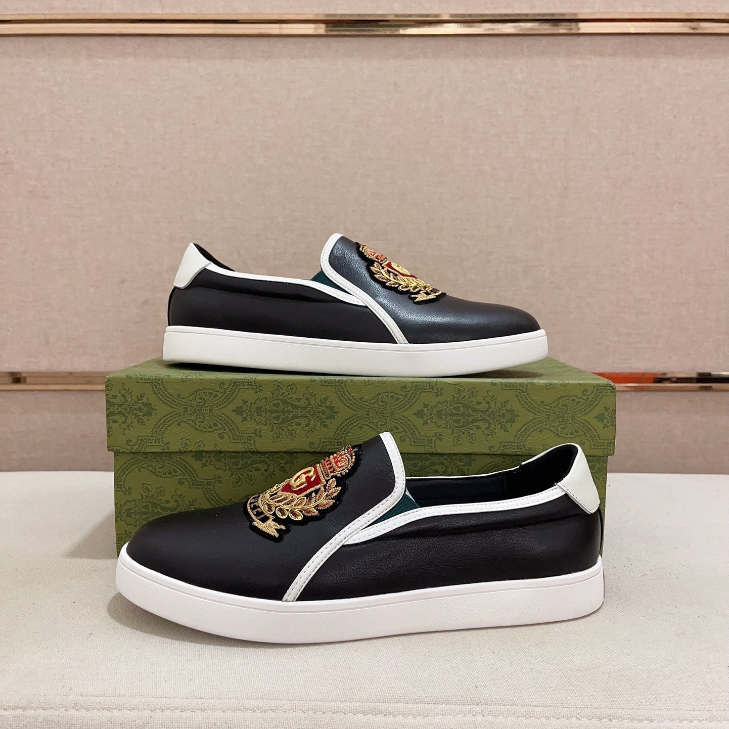 GG Men's Slip on Loafer White Black Cowhide 660094