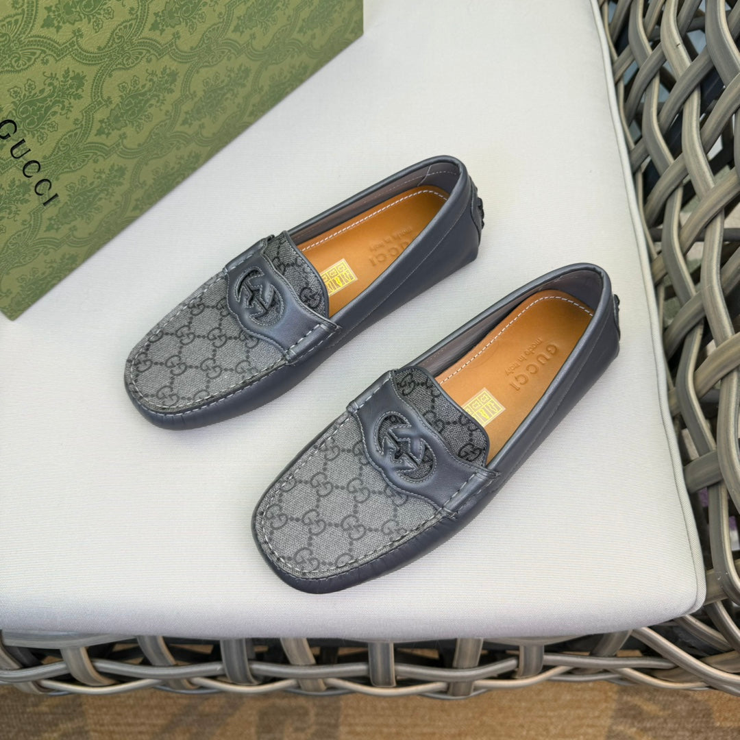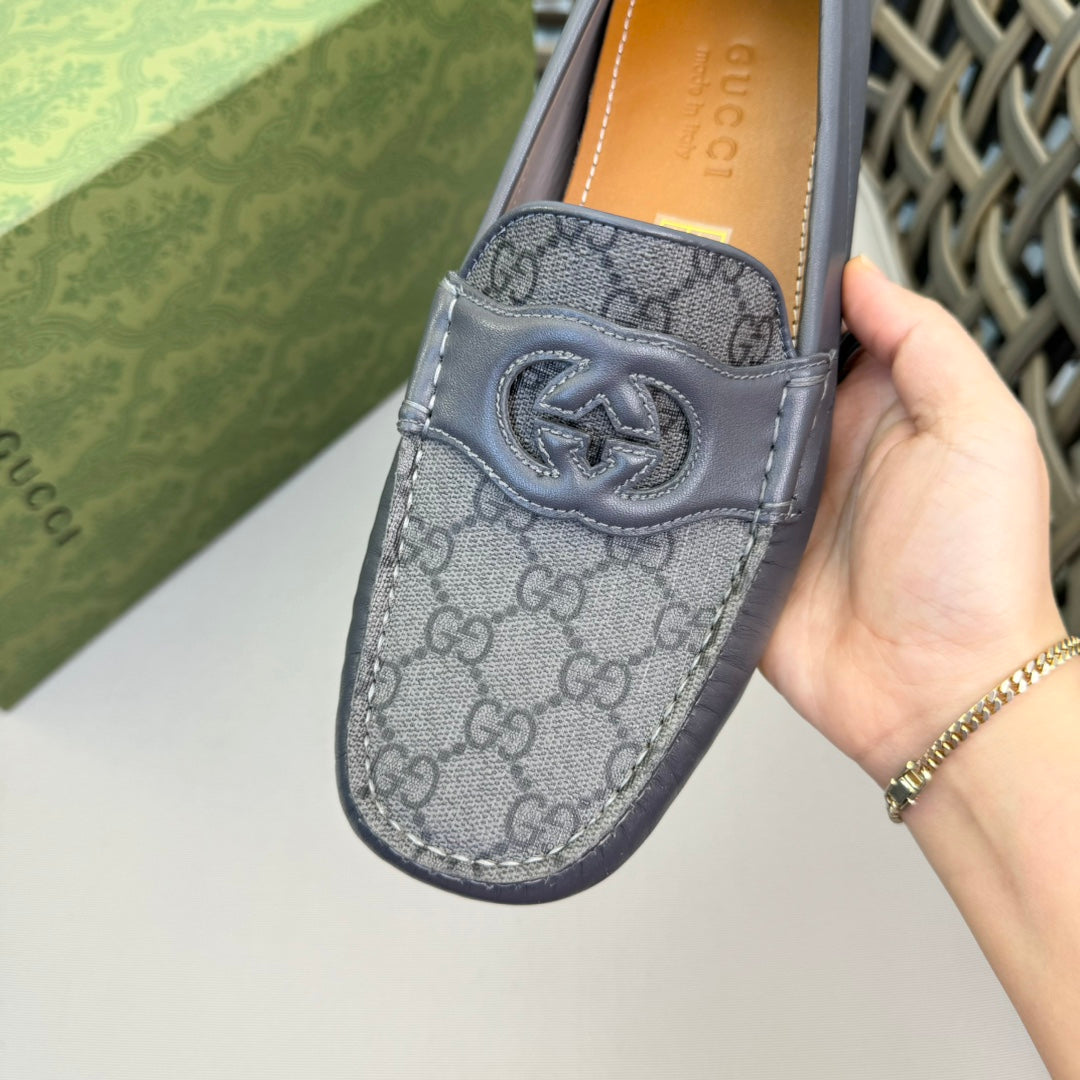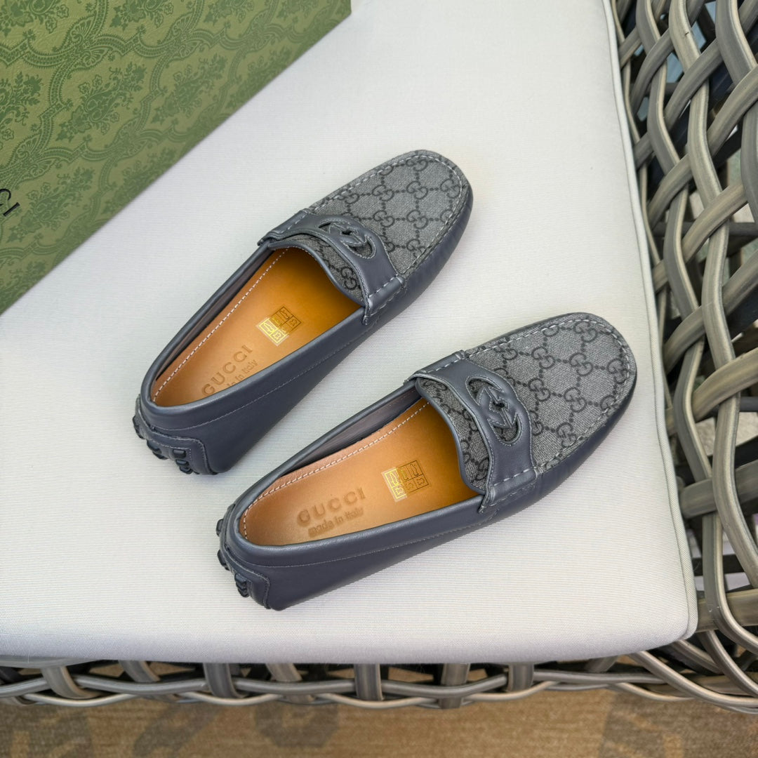 GG Men's Loafer Grey Canvas Cowhide 537557