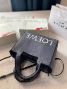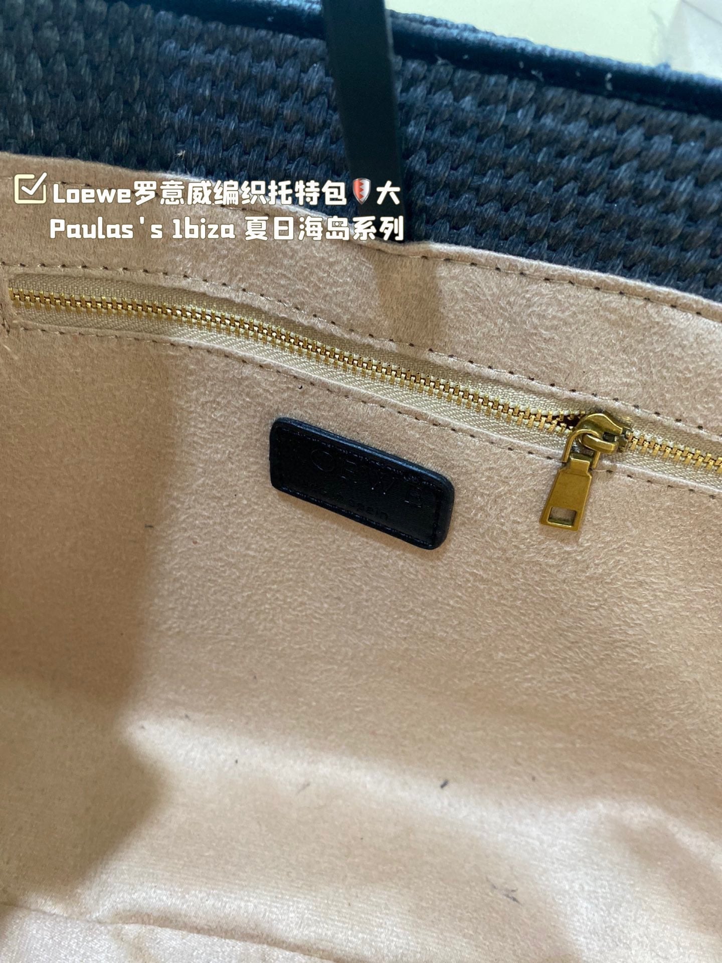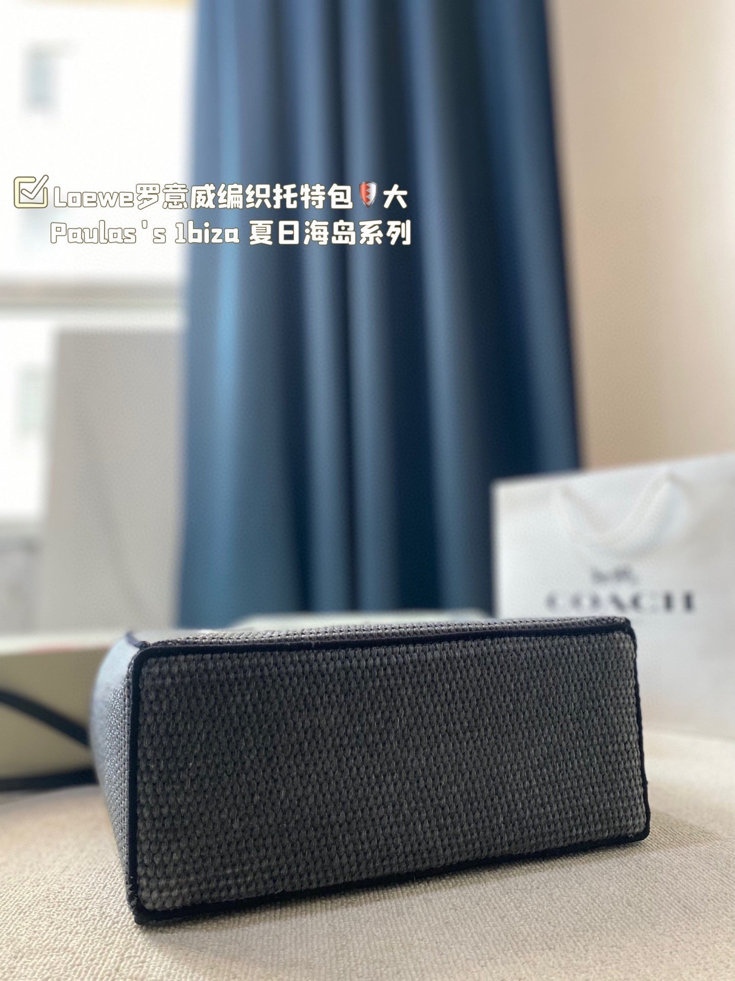 LOE LARGE 32 FONT TOTE IN BLACK RAFFIA