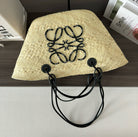 Loew Anagram Basket 46cm Beige Raffia Black Calfskin