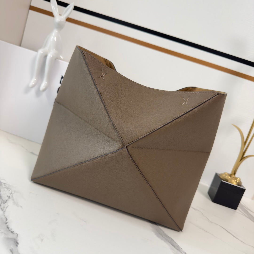 Loewe Medium-Sized Puzzle Fold Handbag Taupe Soft Grain Cowhide