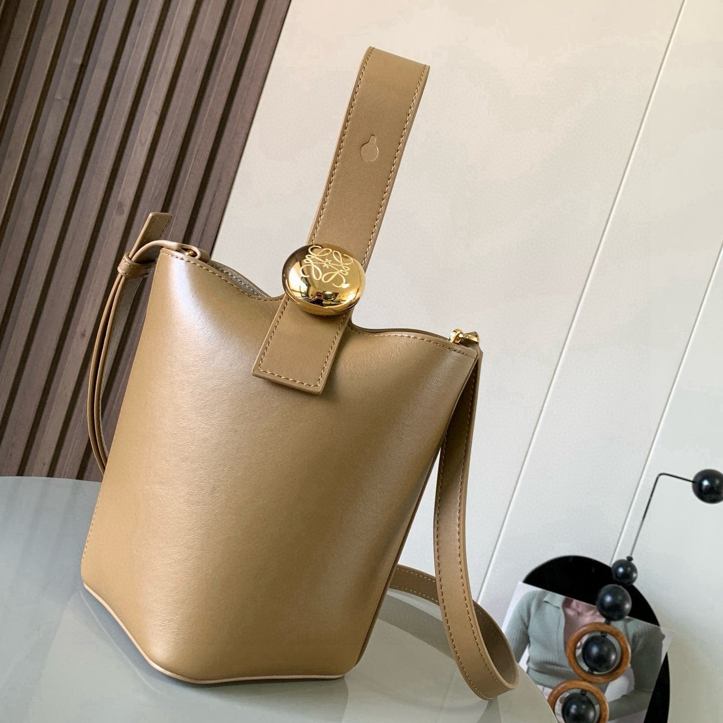 Loewe Mini Pebble Bucket Bag Bronze Brown Smooth Calfskin