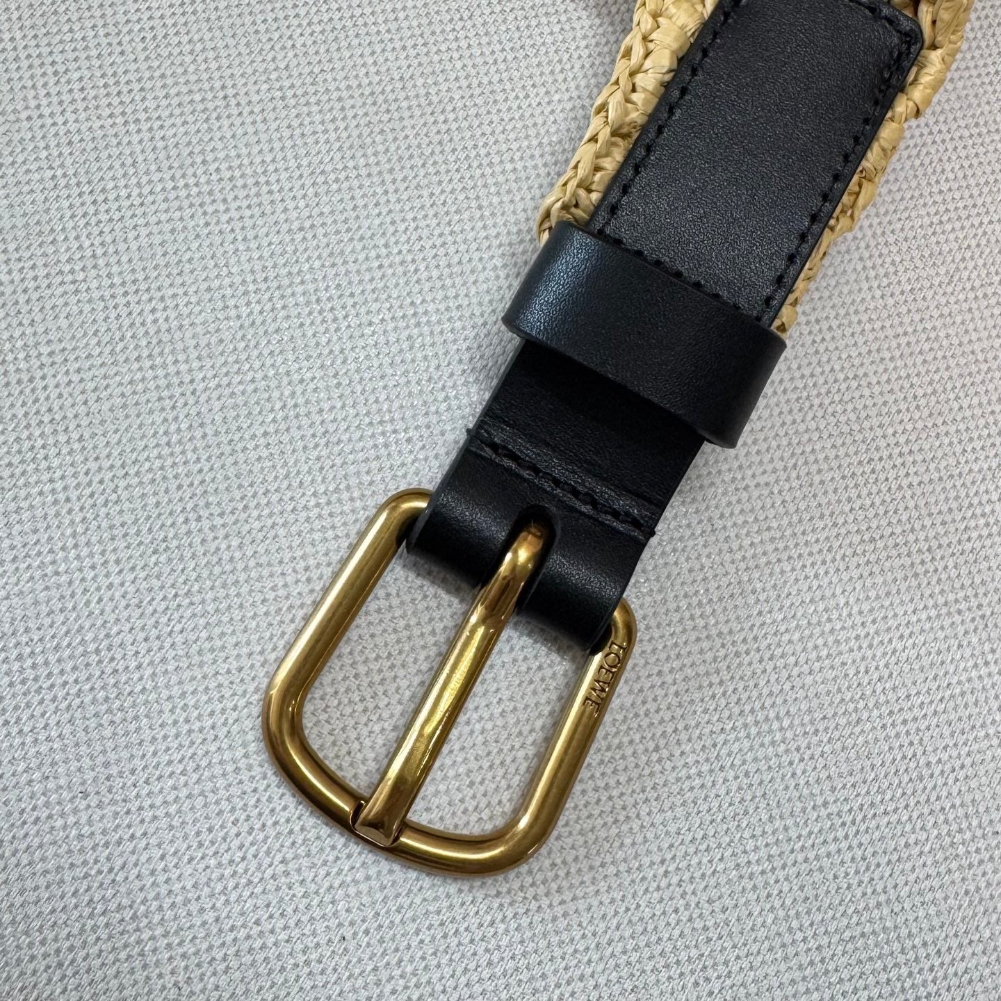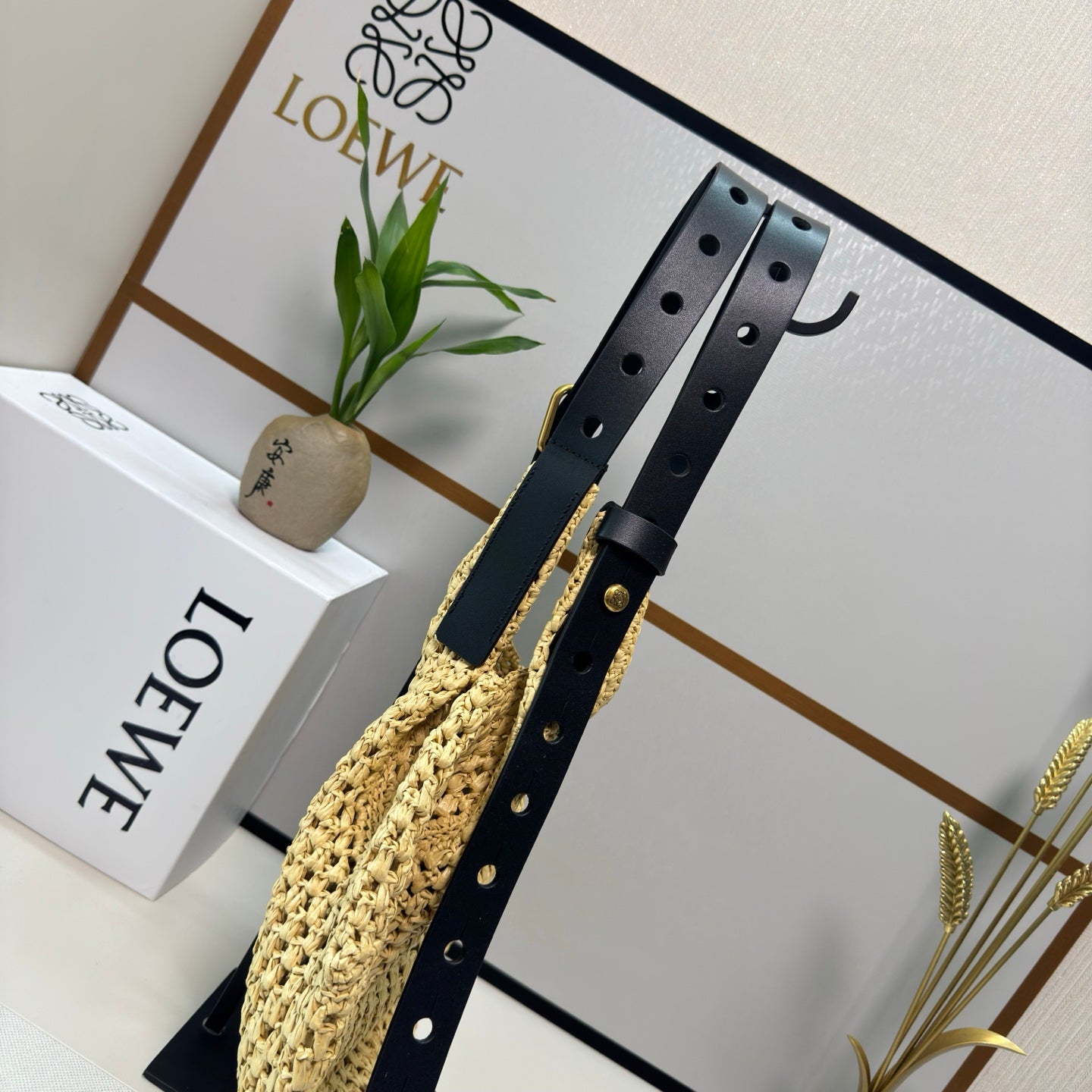 Loewe Punch Hole Hobo Straw Bag Black Calfskin Beige Raffia