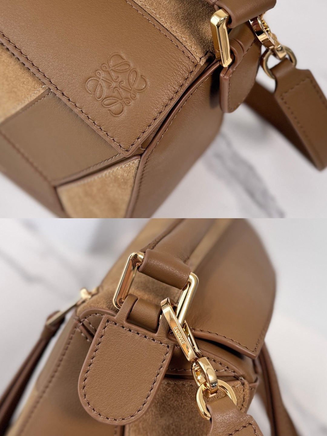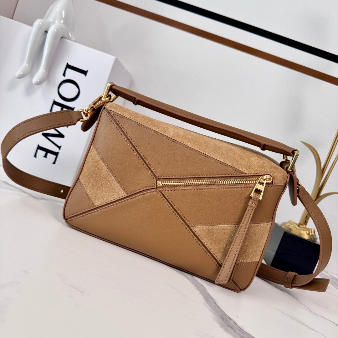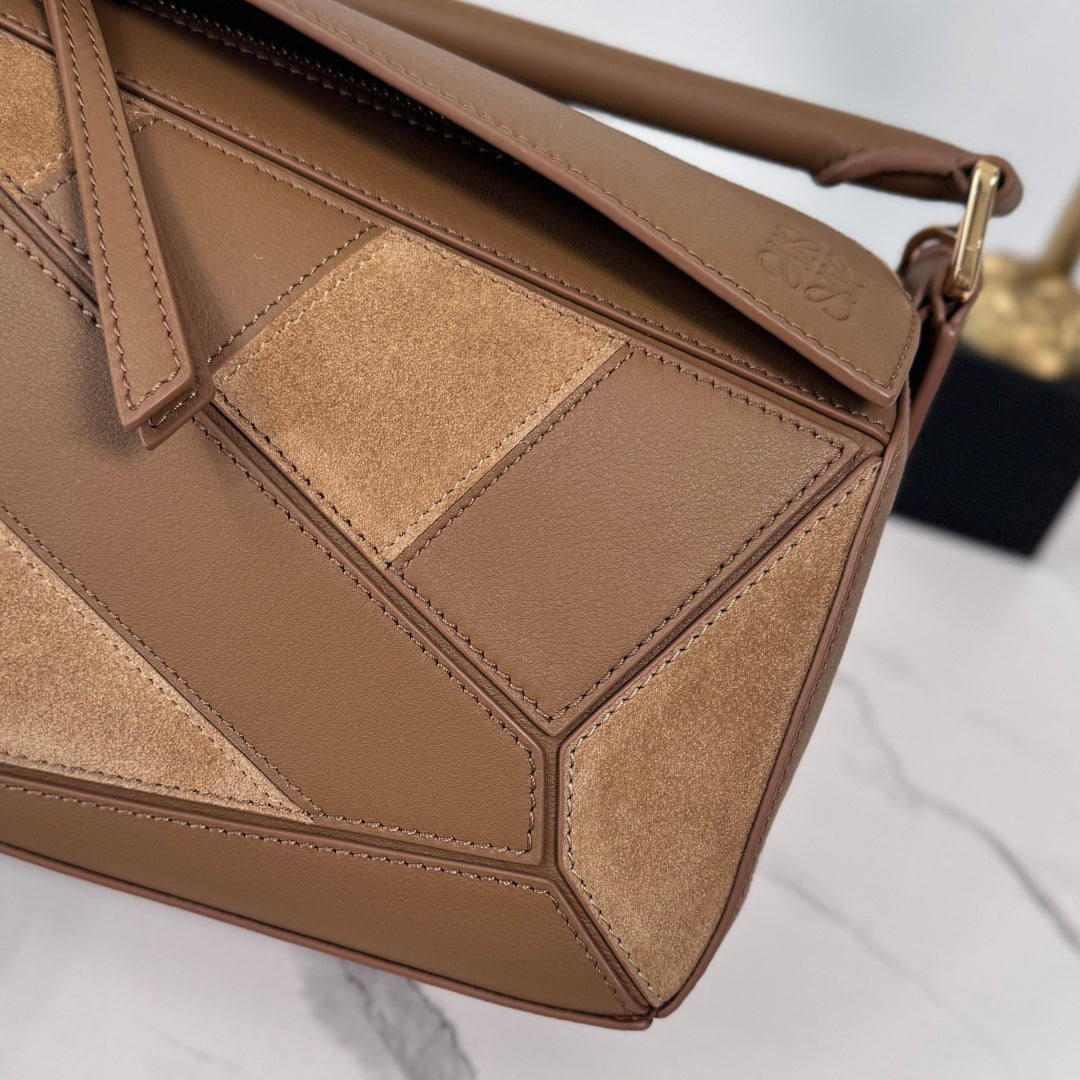 Small Puzzle Bag Brown Calfskin Suede
