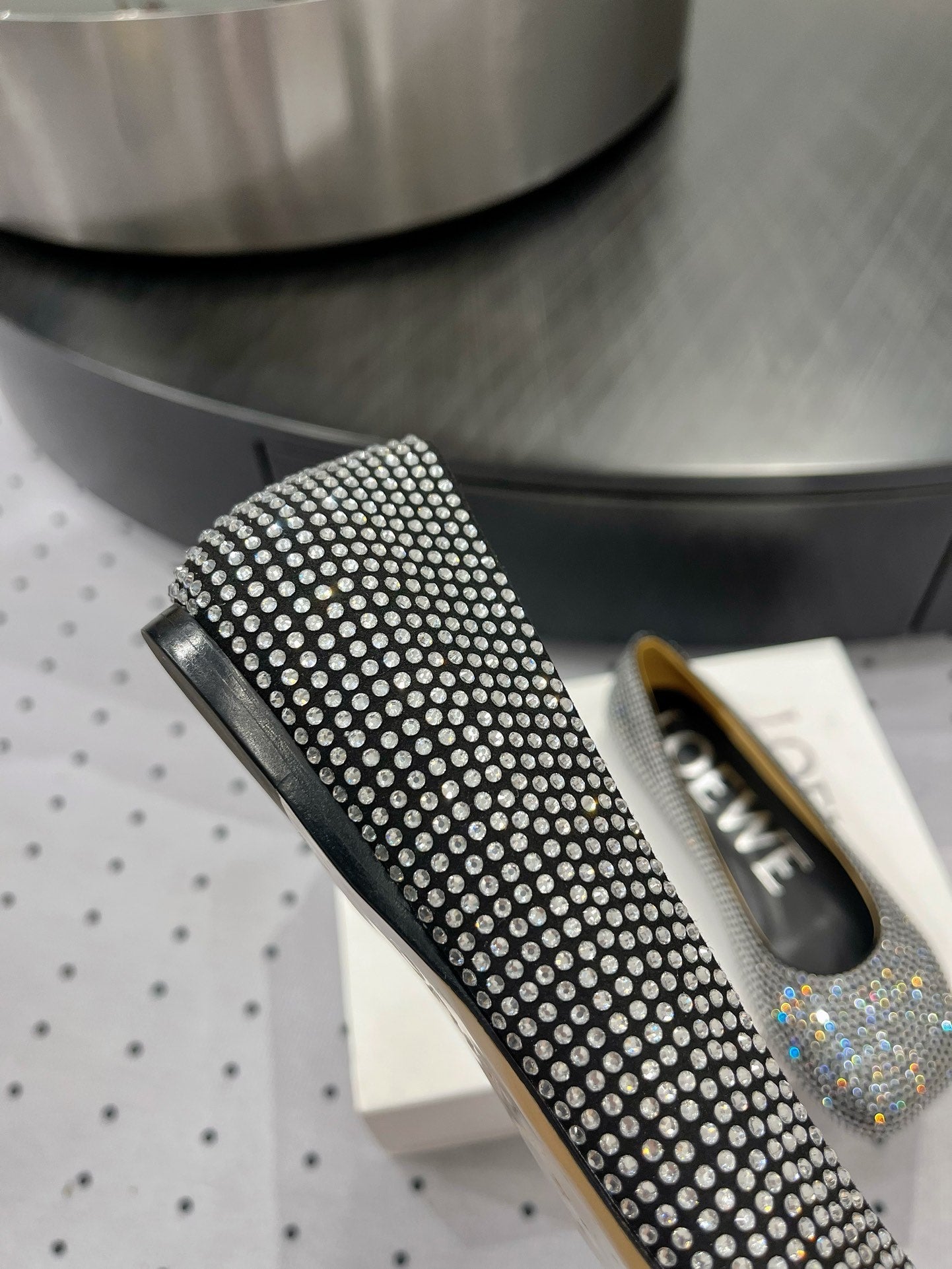 Toy ballerina in suede and allover rhinestones black
