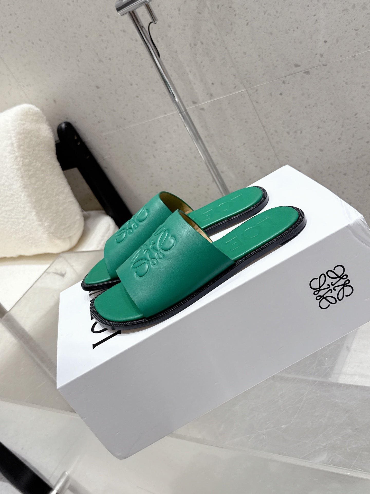 Loewe 25 flat slippers vibrant green calfskin