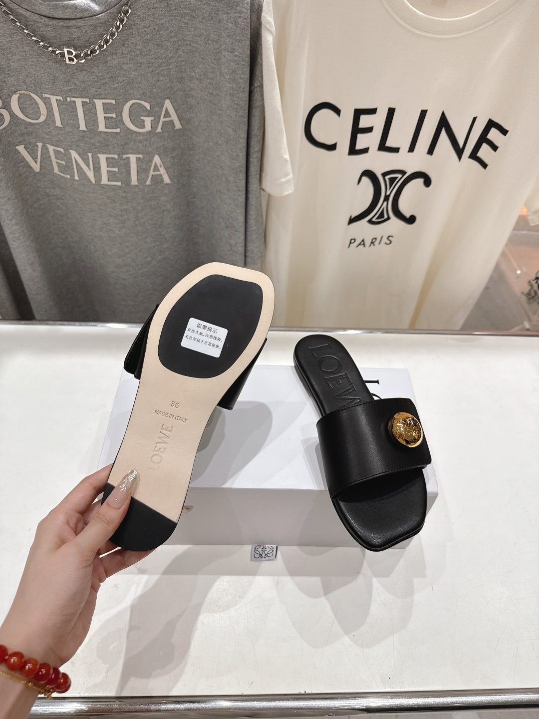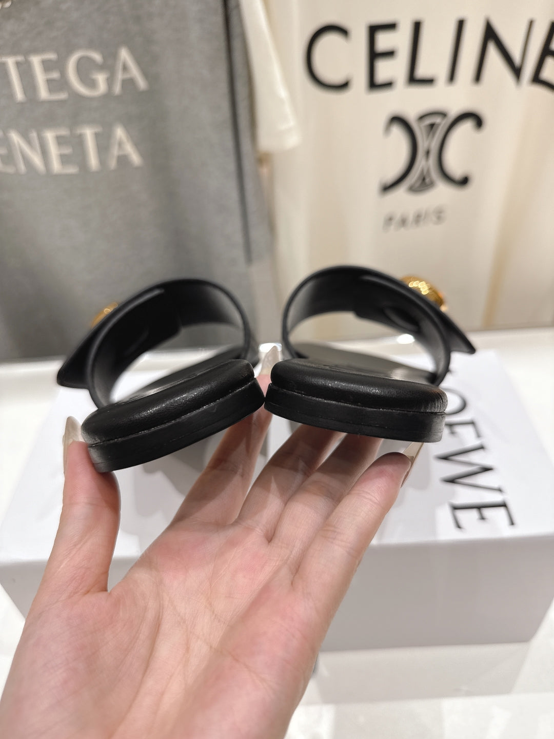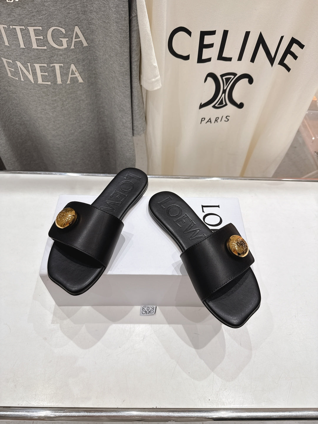 Loewe 25 Pebble Slide Black Calfskin 325329
