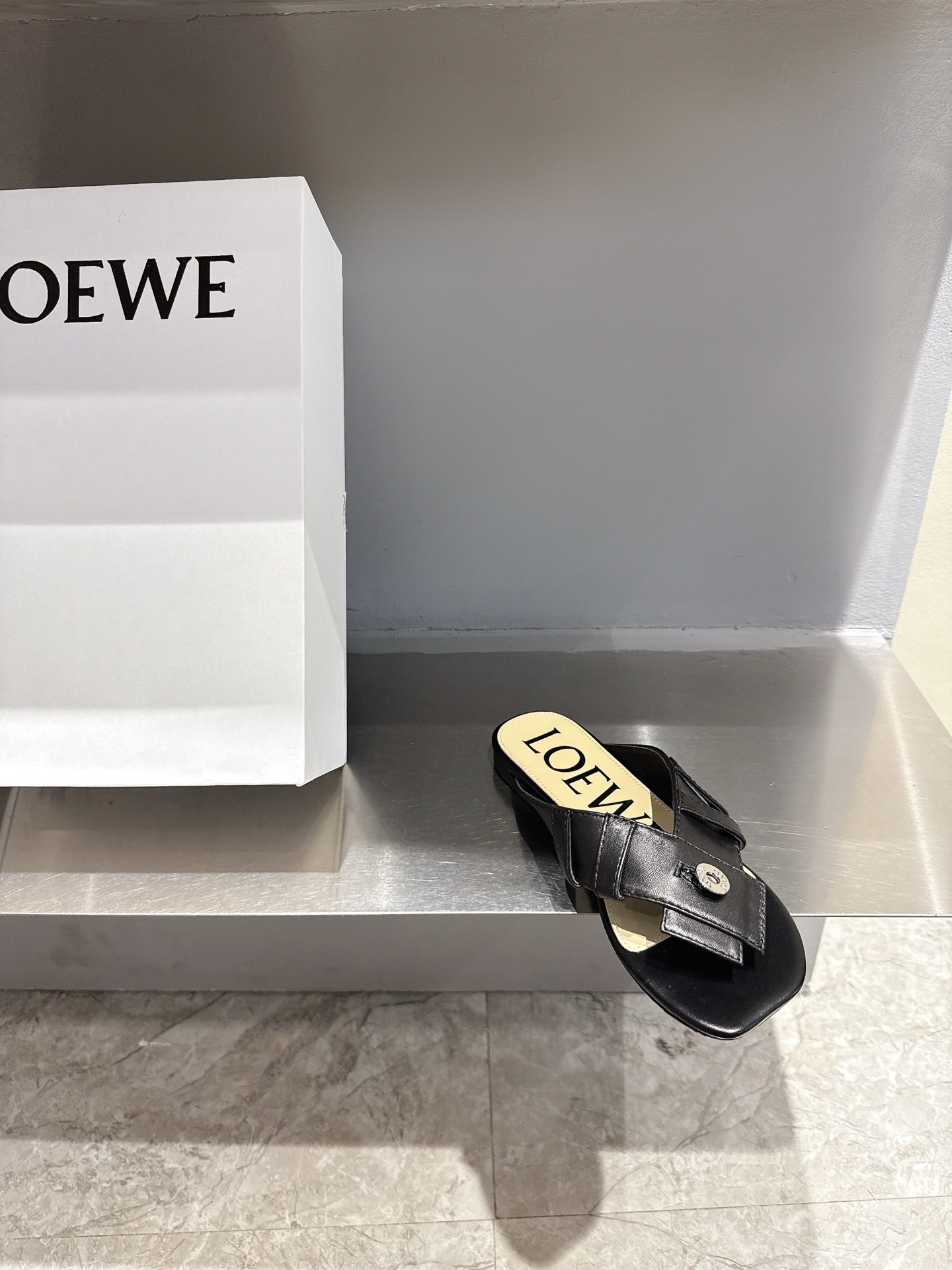 Loewe 25 Toy Panta Toe Thong Black Sheepskin