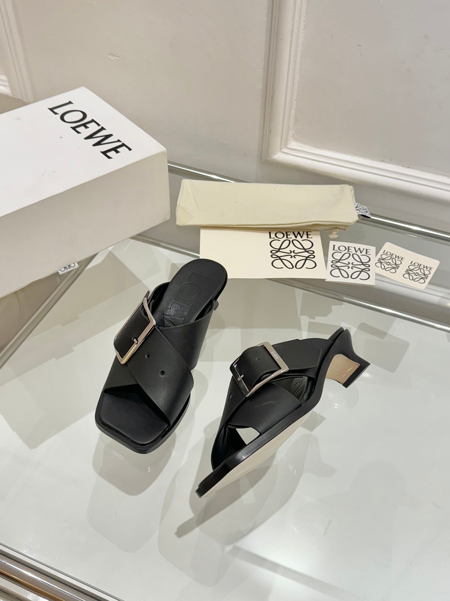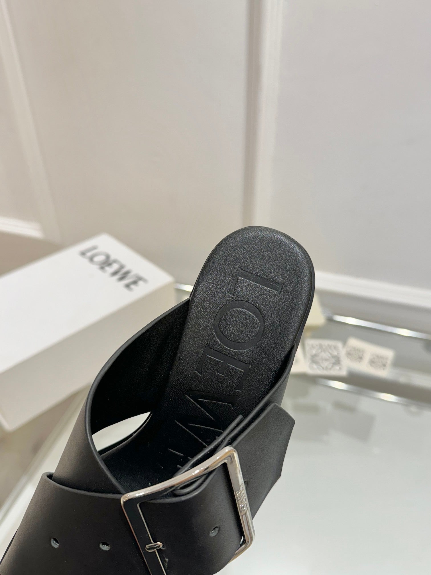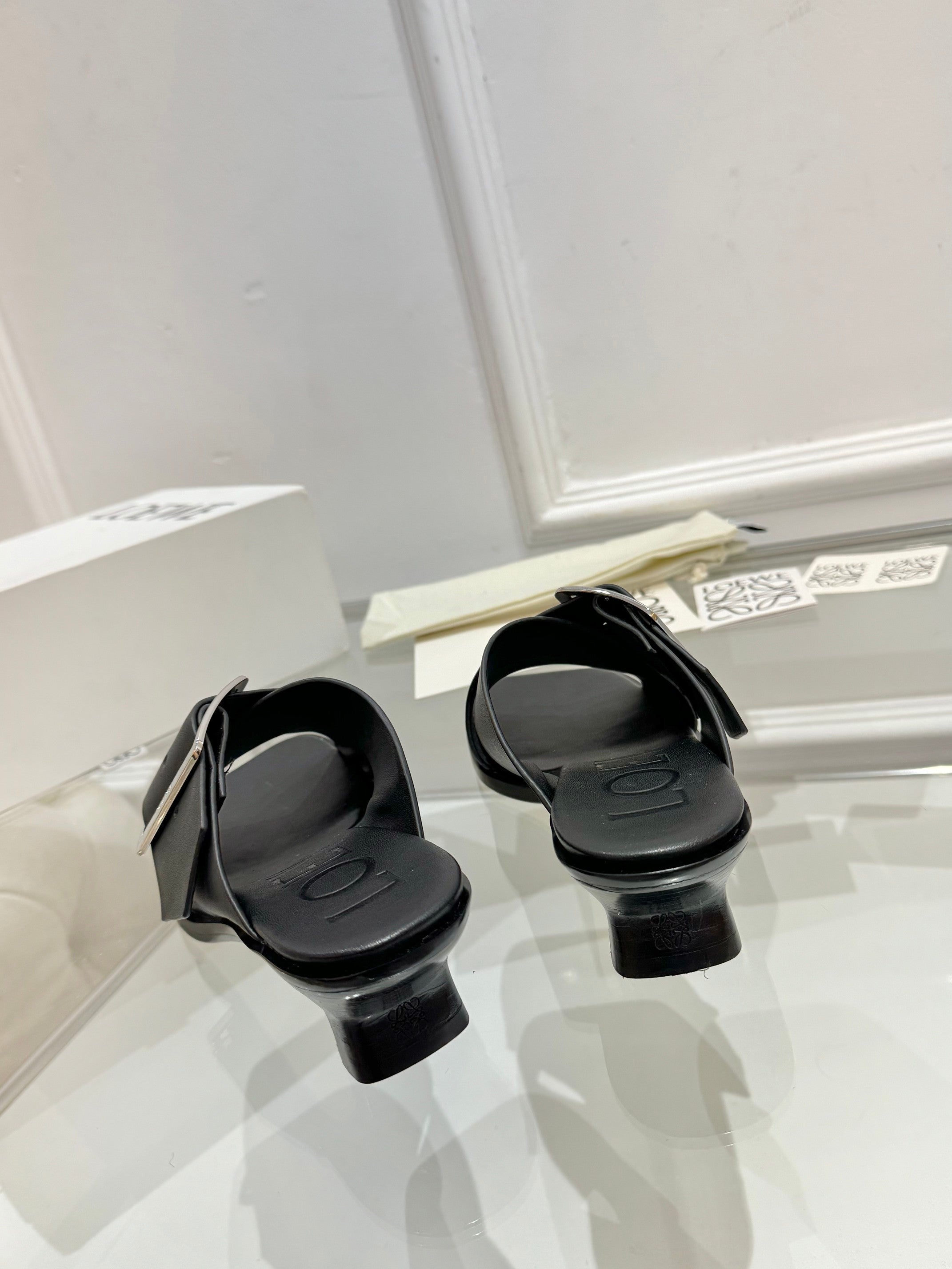 Loewe Petal Belt Mule Black Cowhide 246575