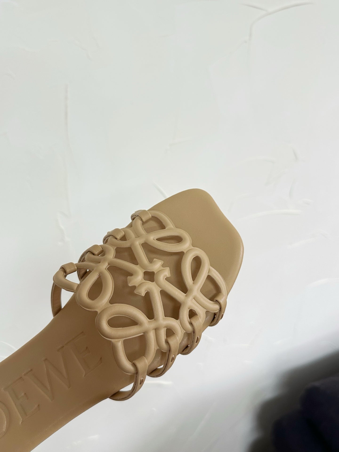 Petal Anagram Slide in Beige Soft Calfskin 273516