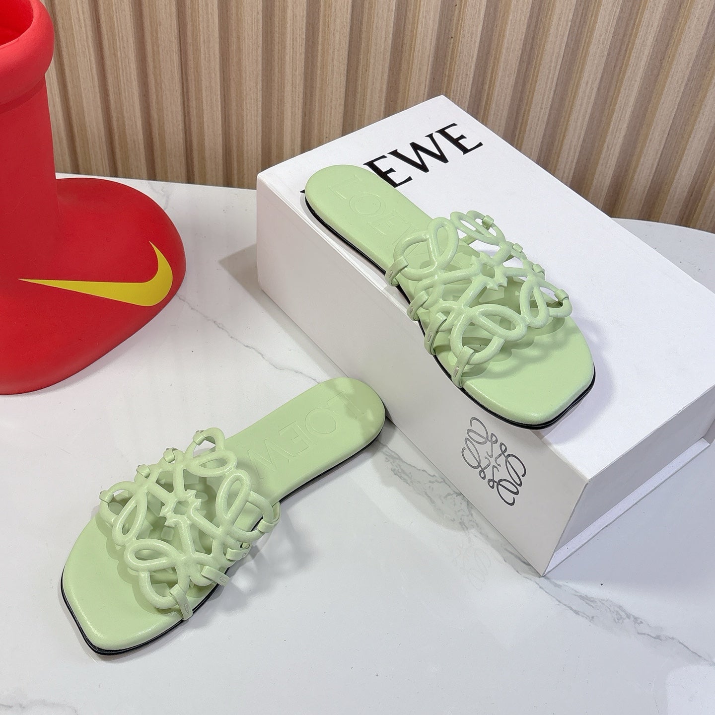 Petal Anagram Slide in Seafoam Soft Calfskin 273745