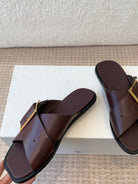 PETAL BELT FLAT SANDAL IN RUSSET BROWN CALFSKIN