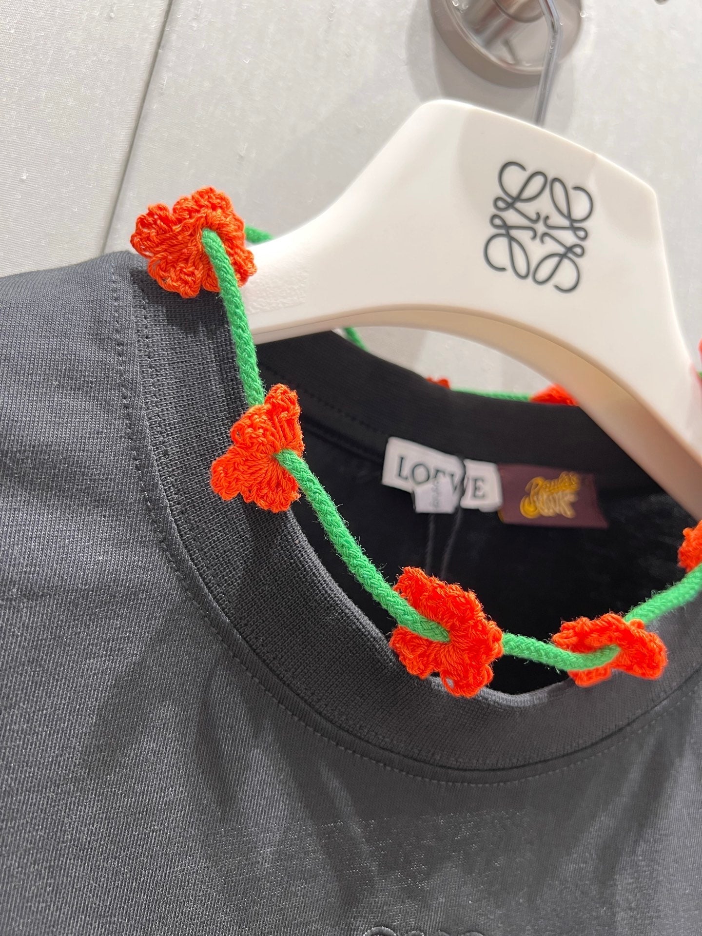 Loewe 25 Floral Neck Halter T-shirt Black Cotton 218253