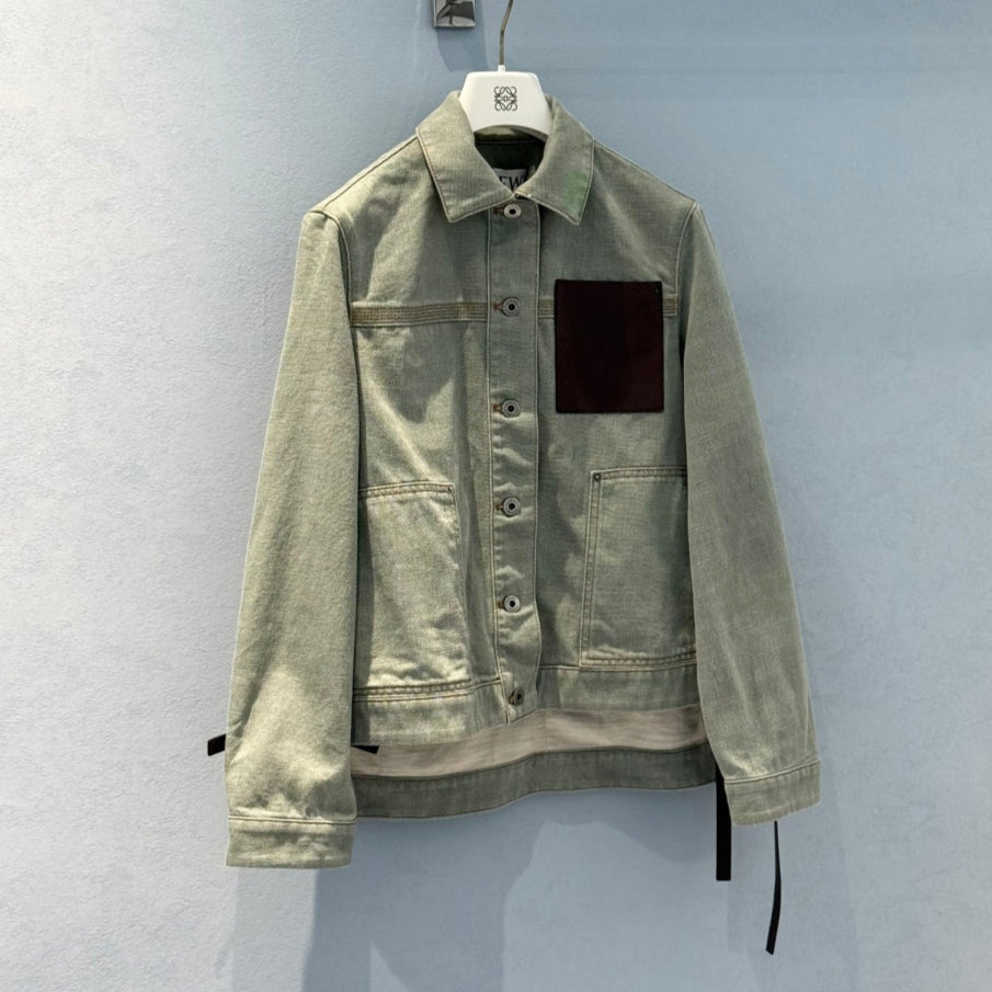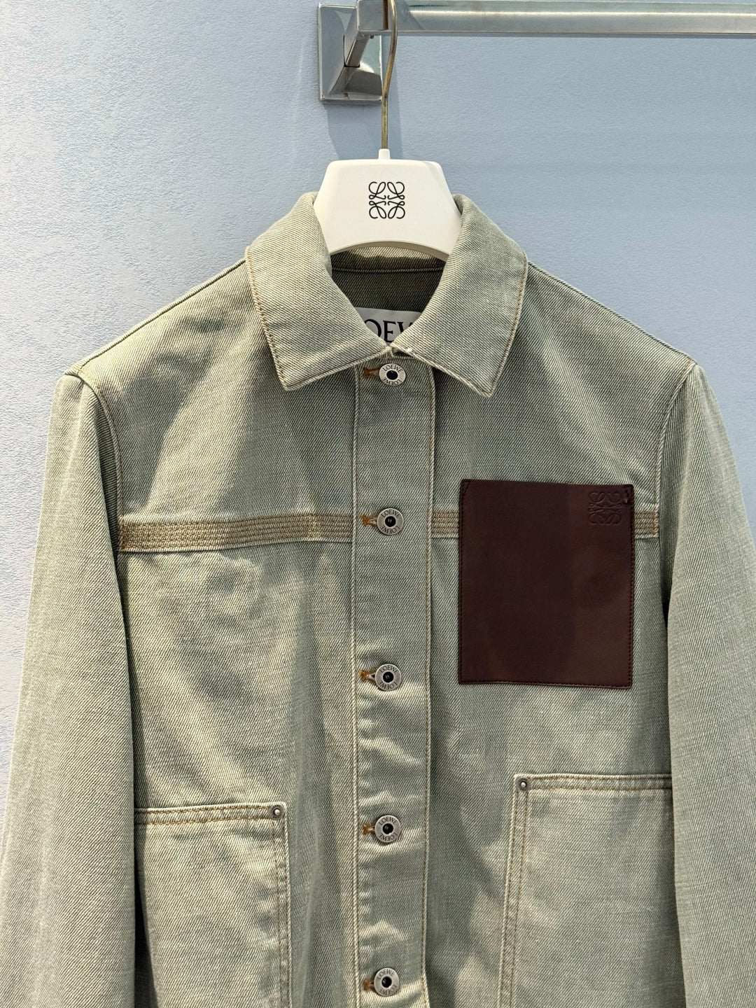 Loewe 25 Jacket Beige Green Cotton And Denim