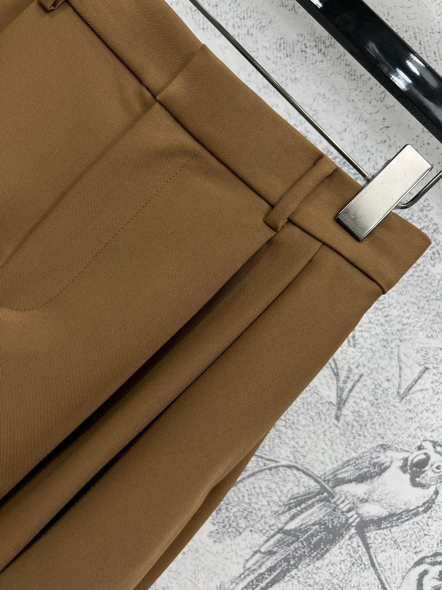 Loewe 25 Pleated Short Skirt Khaki Brown Polyester Fiber