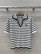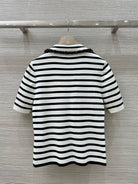 Loewe 25 Striped Knitted Polo Short-sleeved Top White Tencel