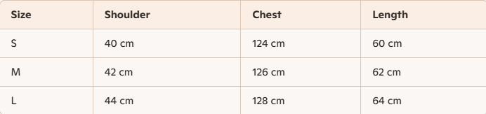 • Size : S , M , L