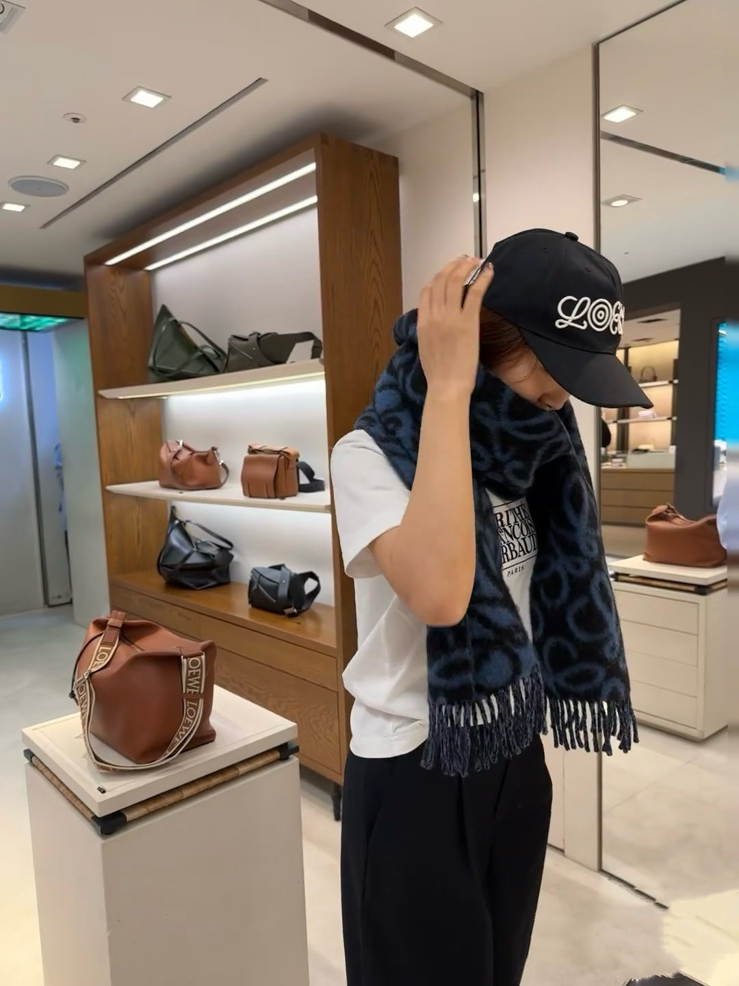 SCARF 186 CM IN COBALT BLUE MIX BLACK ALPACA AND WOOL 403824