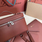 EXTRA POCKET L19 IN GARNET RED CALFSKIN WITH SILVER HARDWARE