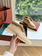 LP Open Walk Ankle Boot Light Beige Brown Fur Suede 507421