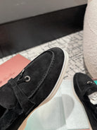 LP Summer Charms Walk Loafers In Black Suede With Rabbit Fur Lining 985641