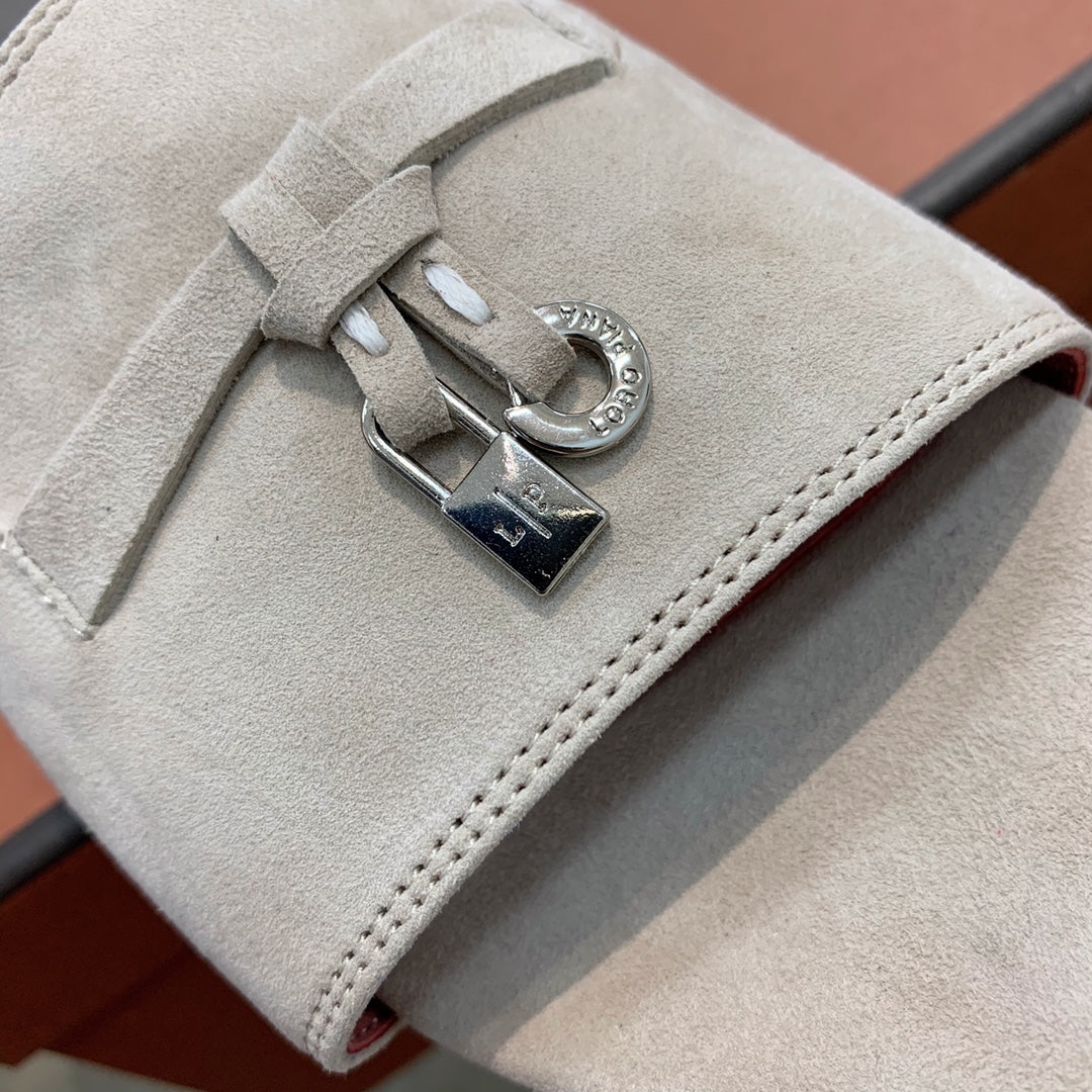 Loro Piana Light Grey White Suede Charms Walk Flat Mules