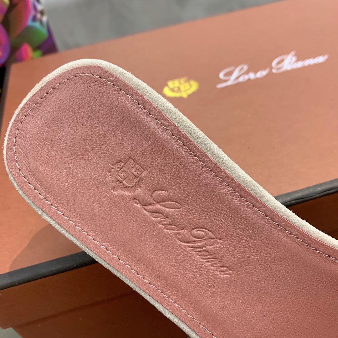 Loro Piana Light Pink White Suede Charms Walk Flat Mules