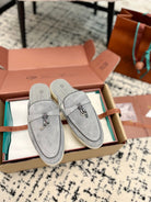 Loro Piana Grey Black Suede Charms Walk Flat Mules