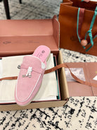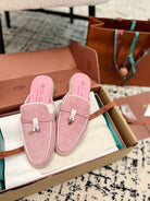 Loro Piana Pink Suede Charms Walk Flat Mules