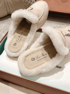 LP Charms Walk Babouche Loafer Bisque Cream mix White Suede With Rabbit Fur Lining 206243