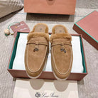 LP Charms Walk Babouche Loafer Marigold Brown Suede With Rabbit Fur Lining 206232