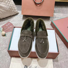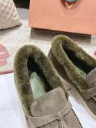 LP Summer Charms Walk Loafers Army Green Suede With Rabbit Fur Lining 206251