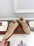 LP Tennis Walk Sneaker In Light Brown Suede Lined With Wool Fleece 988272