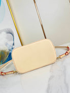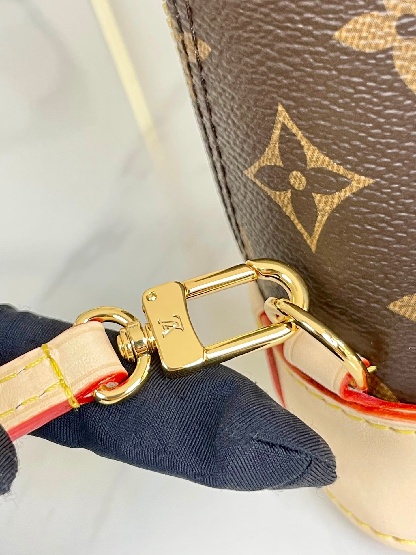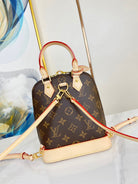 ALMA BACKPACK 20 IN BROWN MONOGRAM CANVAS AND BEIGE CALFSKIN TRIM GOLD BUCKLE