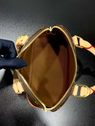 ALMA BB 23 IN BROWN MONOGRAM CANVAS AND BEIGE CALFSKIN TRIM GOLD BUCKLE