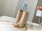 capucines bb 27 beige cloud blue taurillon leather gold hardware