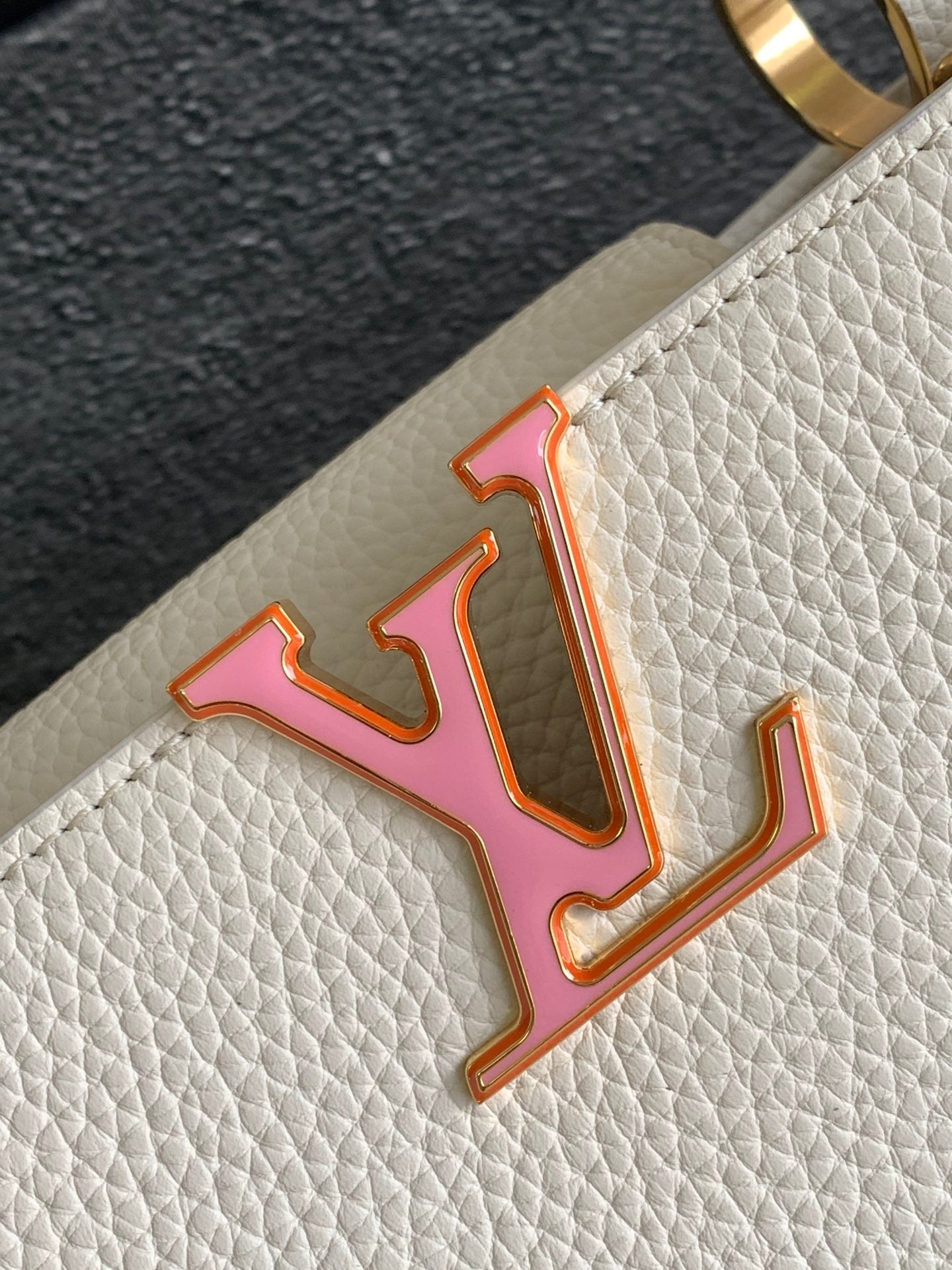 CAPUCINES BB 27 IN PEARL WHITE TAURILLON GOLD HARDWARE