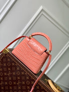 CAPUCINES MINI 21 PINK ORANGE CROCODILE EMBOSSED CALFSKIN GOLD HARDWARE