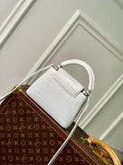 CAPUCINES MINI 21 WHITE CROCODILE EMBOSSED CALFSKIN SILVER HARDWARE