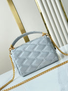 GO-14 MM 23 IN ECRUME GRAY QUILTED LAMBSKIN GOLD HARDWARE