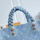 LET GO PM 28 IN LIGHT BLUE MONOGRAM DENIM GOLD HARDWARE