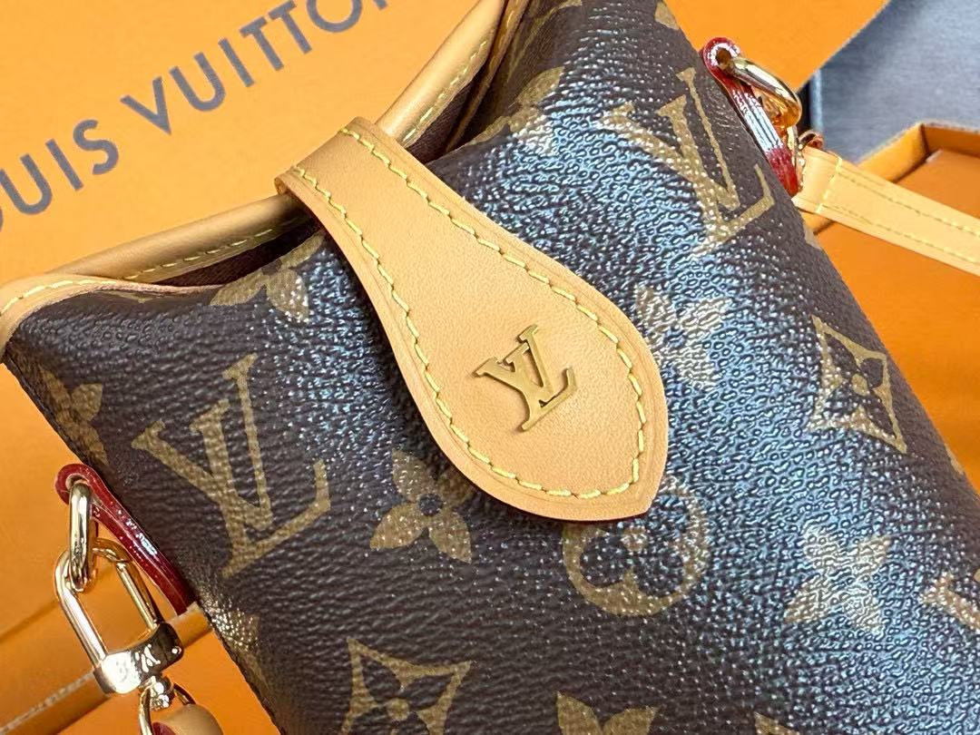 LV Fold Me Pouch Brown Monogram Canvas Cowhide