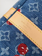 LV x TM Keepall Bandoulière 45cm Bag Blue Red Beige Denim Fabric Cowhide