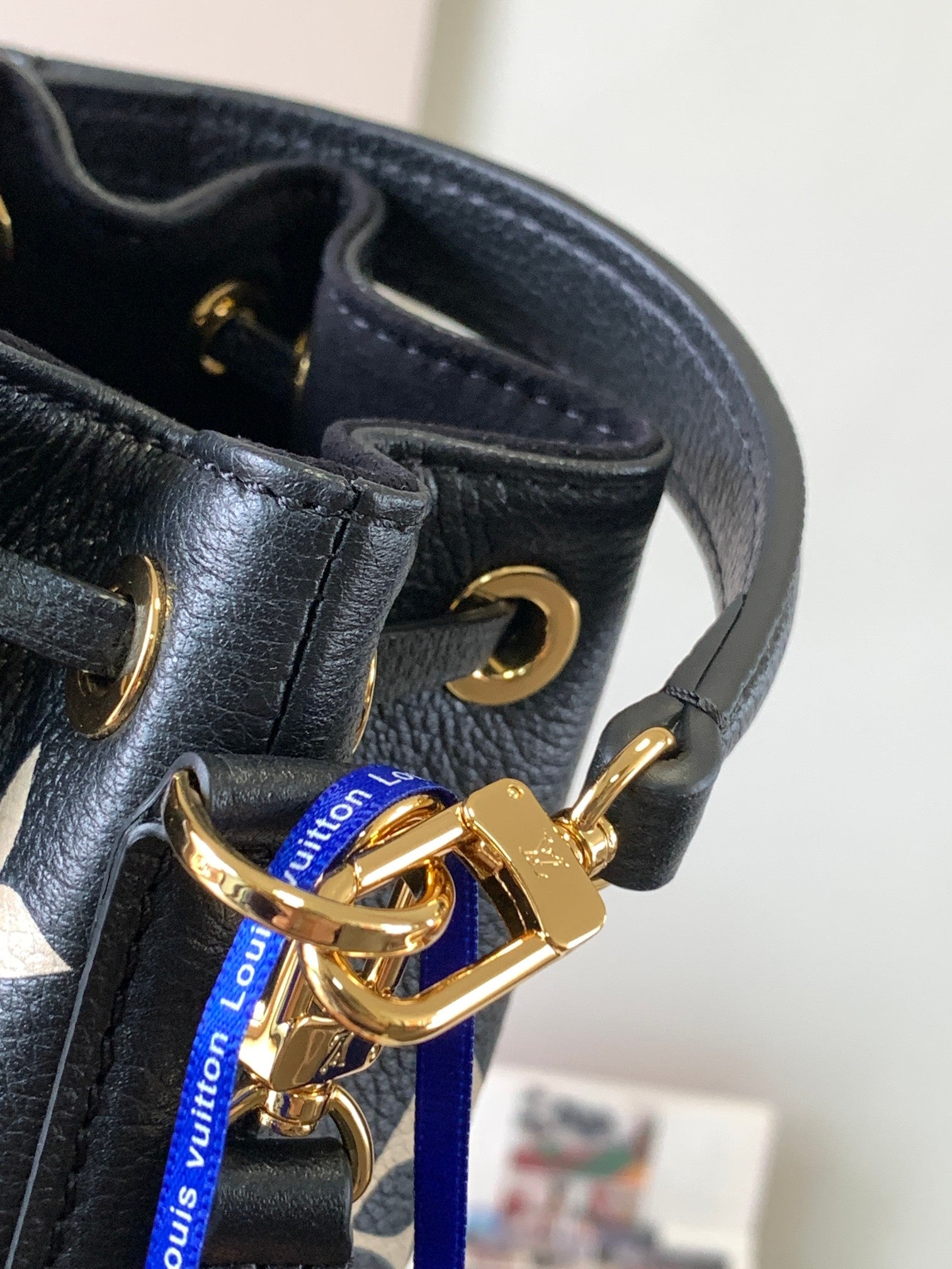 nano noe 13 grey bicolor black monogram gold hardware