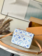 POCHETTE MÉTIS 25 IN LAGOON BLUE MONOGRAM TILES CANVAS GOLD HARDWARE