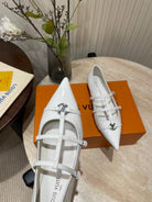 POINTED-TOE TRIPLE-STRAP BALLET FLAT IN WHITE PATENT CALFSKIN
