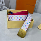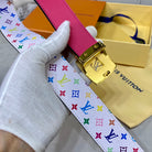 LV 35 MM BELT MULTICOLOR WHITE MIX LIGHT PINK MONOGRAM CALFSKIN GOLD HARDWARE